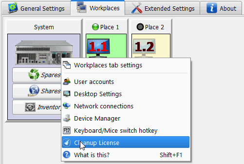 O botão para limpar a licença é duplicado no menu de contexto da imagem da unidade de sistema na guia “Locais de trabalho” :